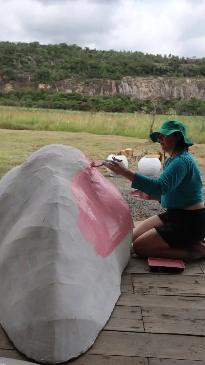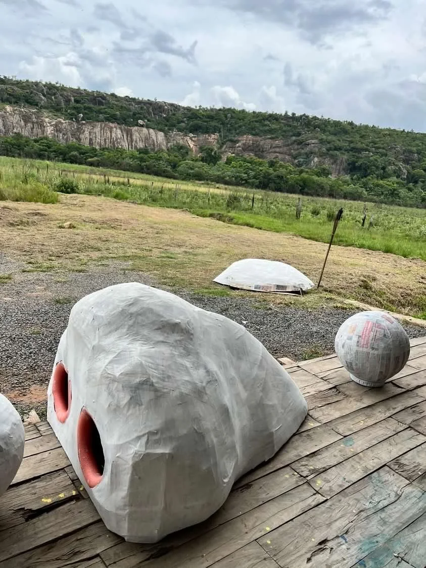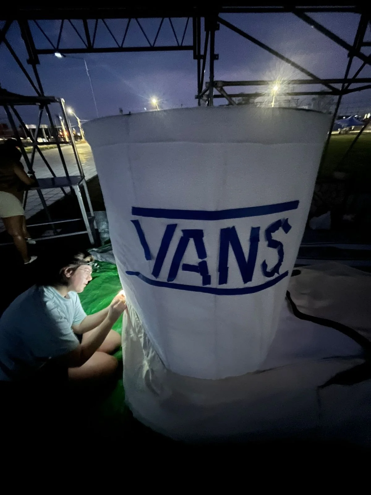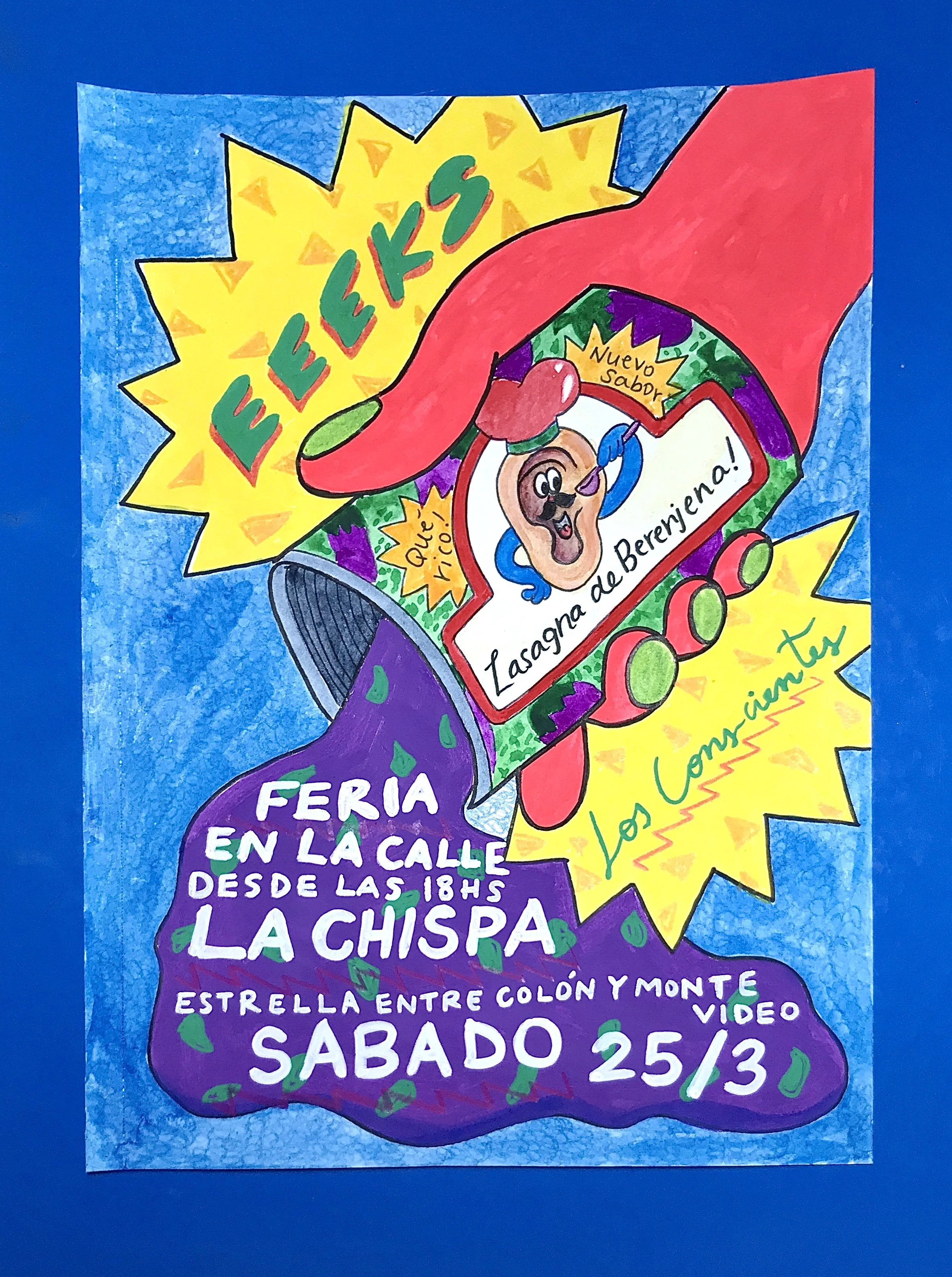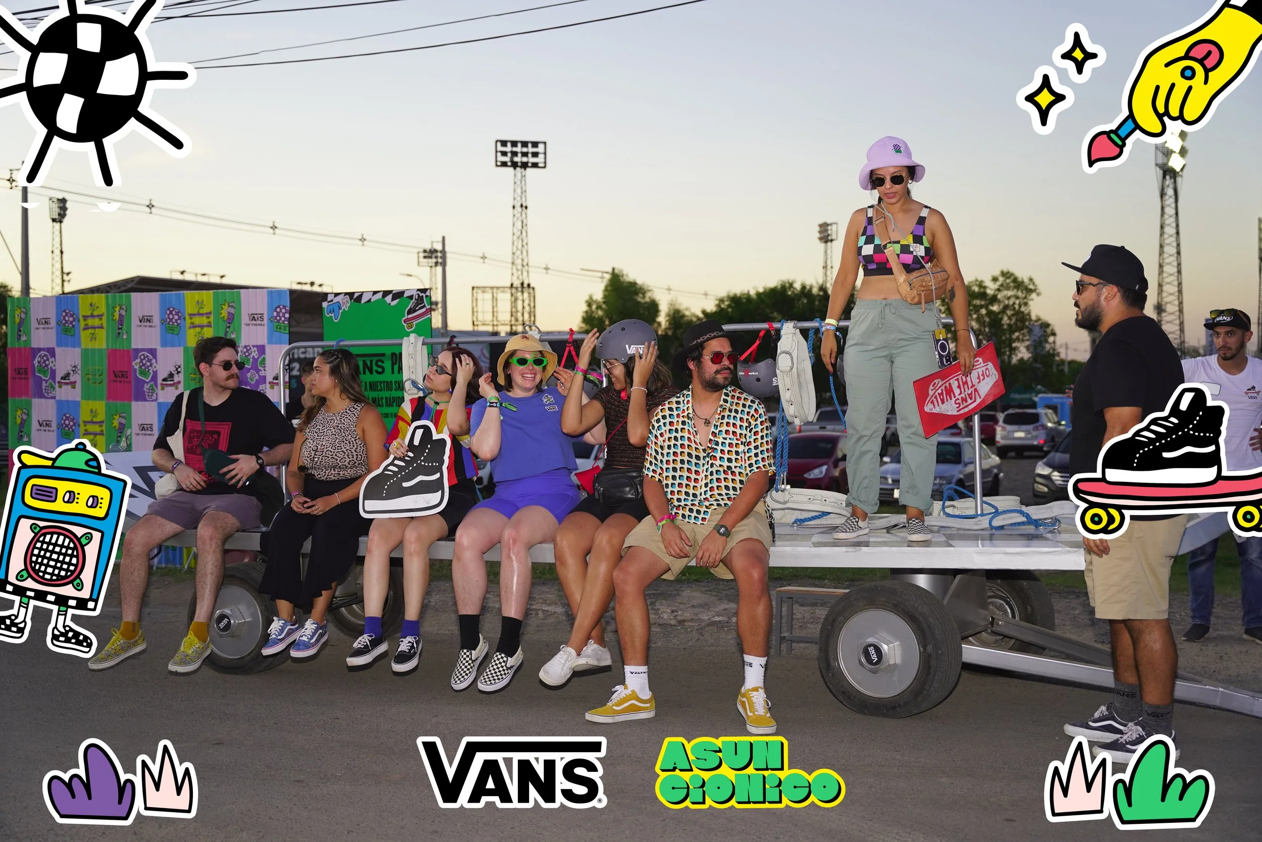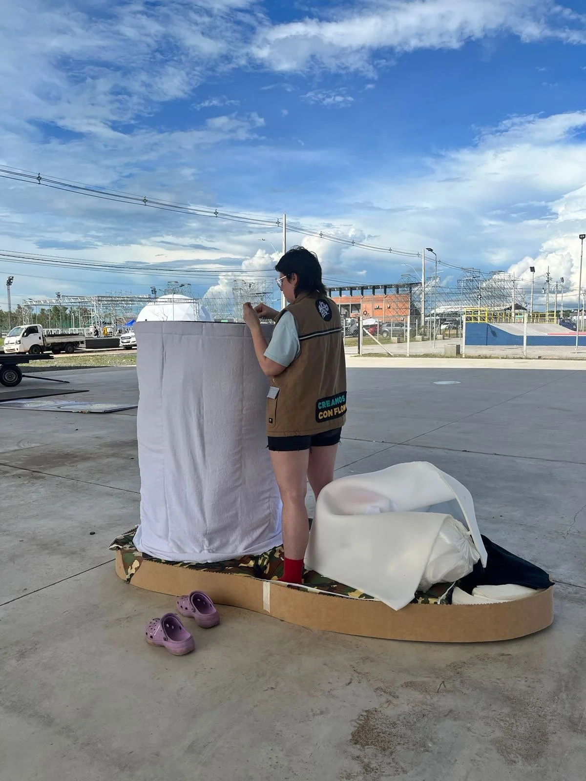 In March 2023 my partner, Ana Belén Diaz Sacco, and I traveled to Acunsíon, Paraguay for a month to help out and put on a series of shows with her band EEEKS. In collaboration with Aharon Emery and Mucho Flow, a creative event team in PY, I helped create immersive sculptures for a 2 night EEEKS event held at Nhi-Mu Teatro Aéreo. The first few rows of images were taken in Tobatí, Paraguay showing some of the “making of” which was a wild 5 day period from concept to install. Then are some images from the two shows at Nhi-Mu. It was a music/play/immersive art show extravaganza that will live in my heart forever! After that are some images of illustrations I did for EEEKS merch: cups, shirts and tote bags along with the surfaces they ended up on. My final project was making a giant xl slip-on, in collaboration with Mucho Flow, for the Vans booth at Asunciónico, one of the country’s big annual music festivals. We had 3 days to come up with the concept and fabricate. All in all it turned out great!